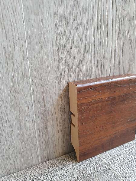 Высота плашек – 80мм. Она позволяет заводить под плинтус стеновые панели и полностью закрывать технические зазоры между стеной и покрытием пола. Можно не выравнивать стены и пол в месте их стыка.